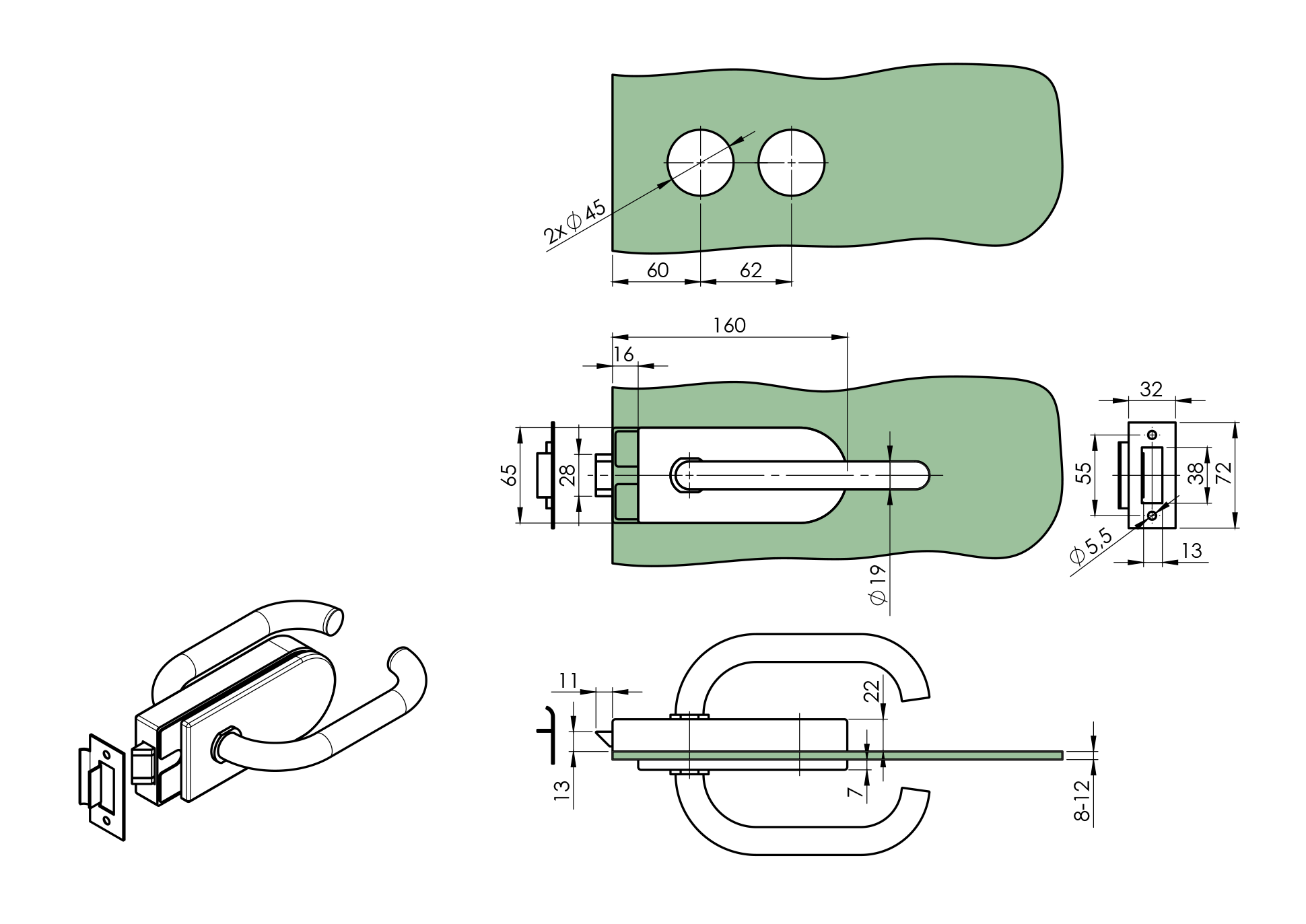 Lowest price in the last 30 days: €63,19 without VATIn stock (91 units)Lock for glass door inox, glass t 8,10,12mm GS-304/D-201/S