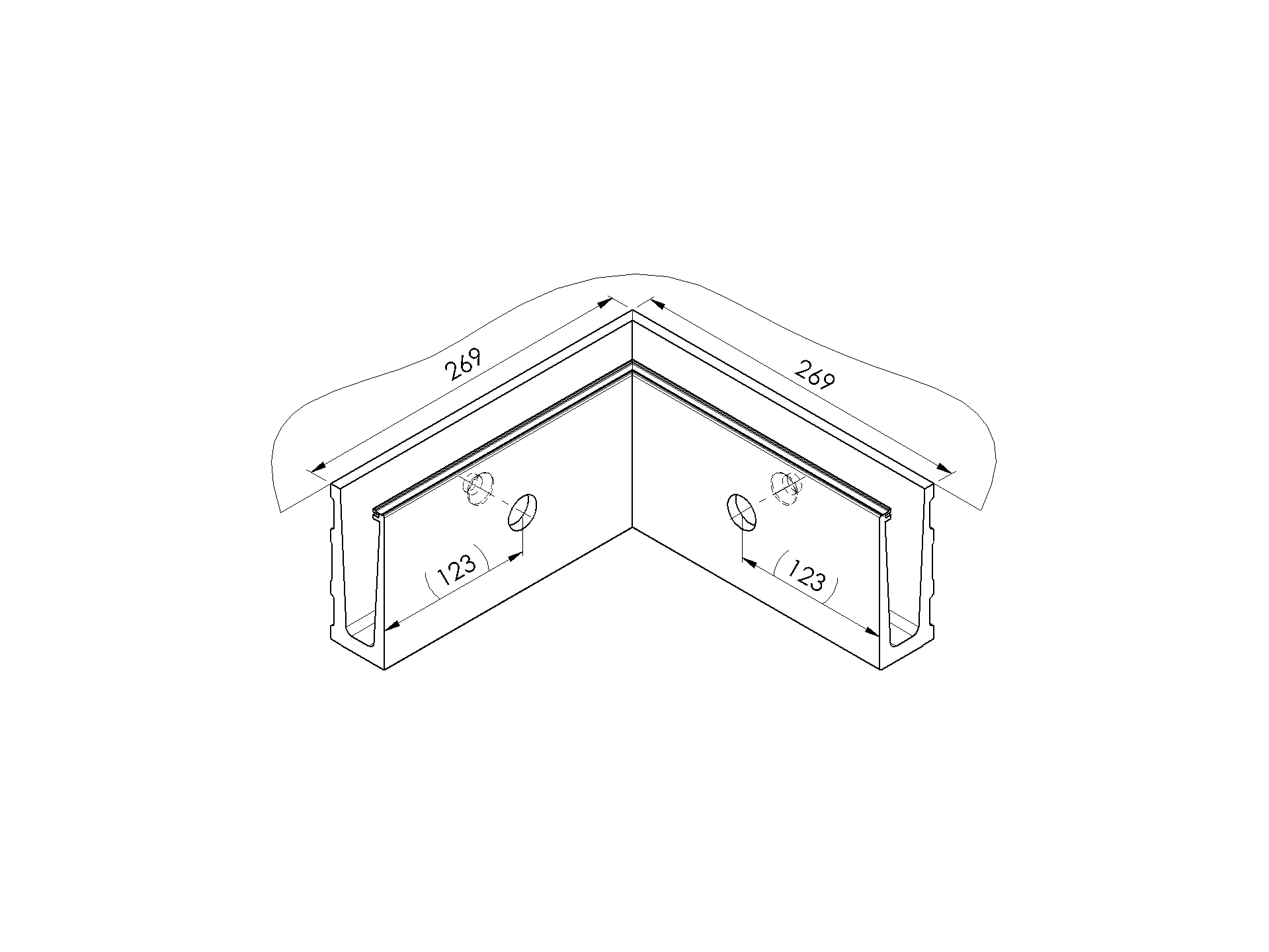Top mount - glass AL/ELOX/Satin L195mm, 90°out AL/0004-S-E-90-OUT