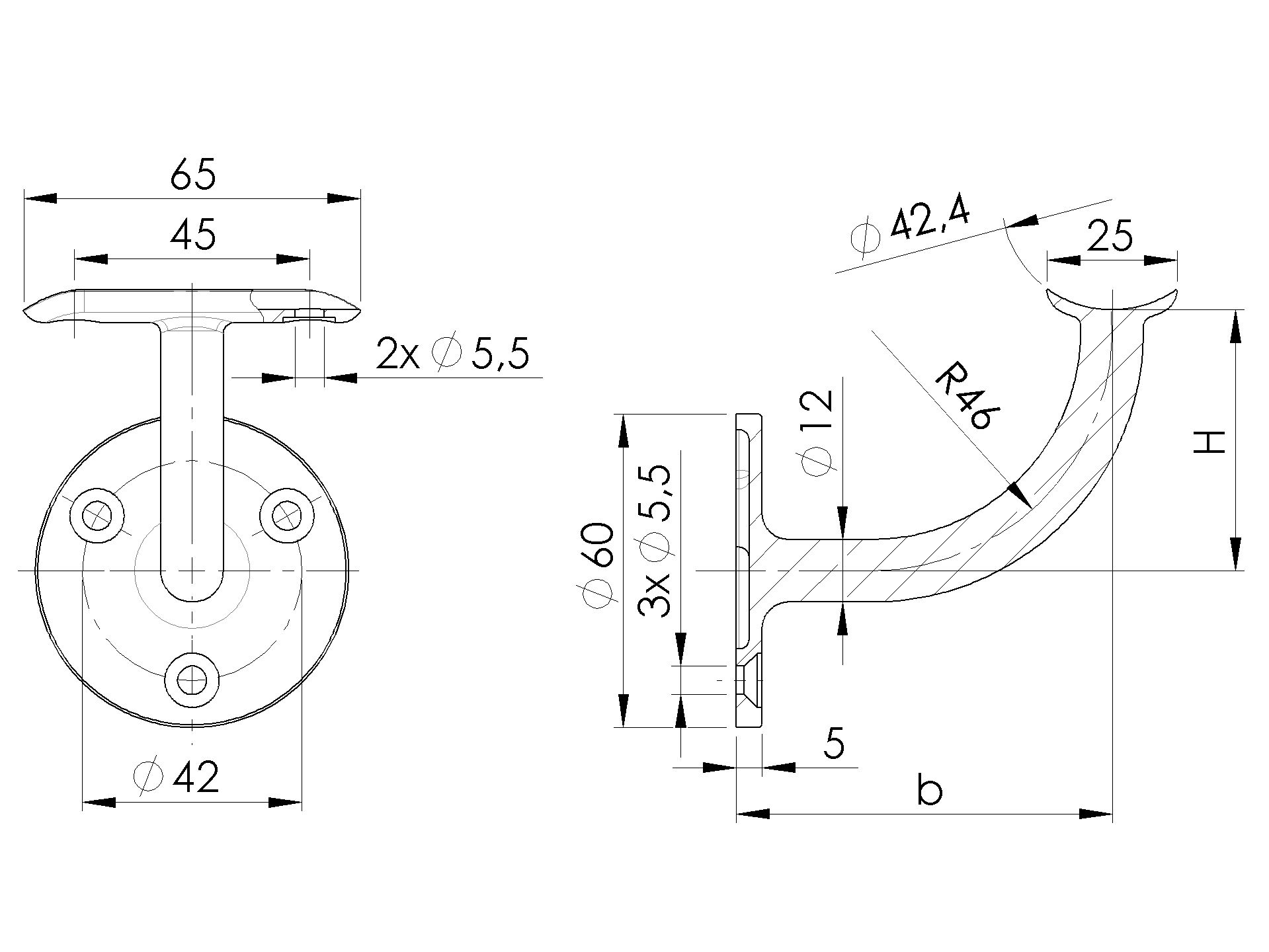Support de main courante mural A/0145-042