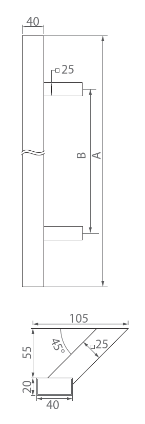 Maniglia - acciaio inox spazzolato AISI304, NERO GS-BLACK/M6-20x40-1200-45