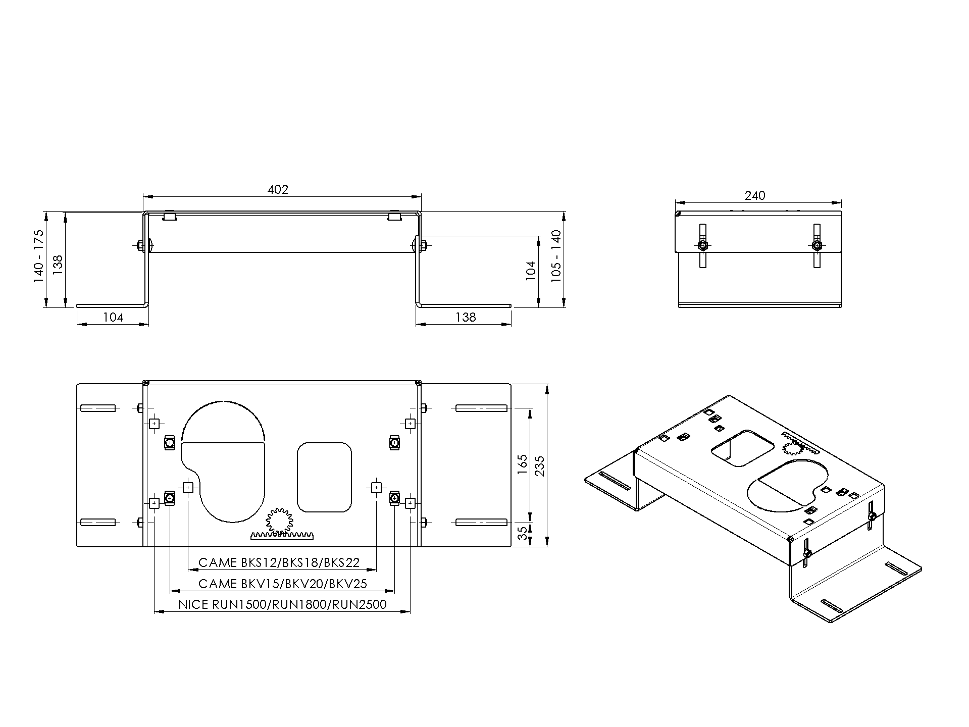 Supporto universale per azionamenti di cancelli scorrevoli UNI-STAND-XL