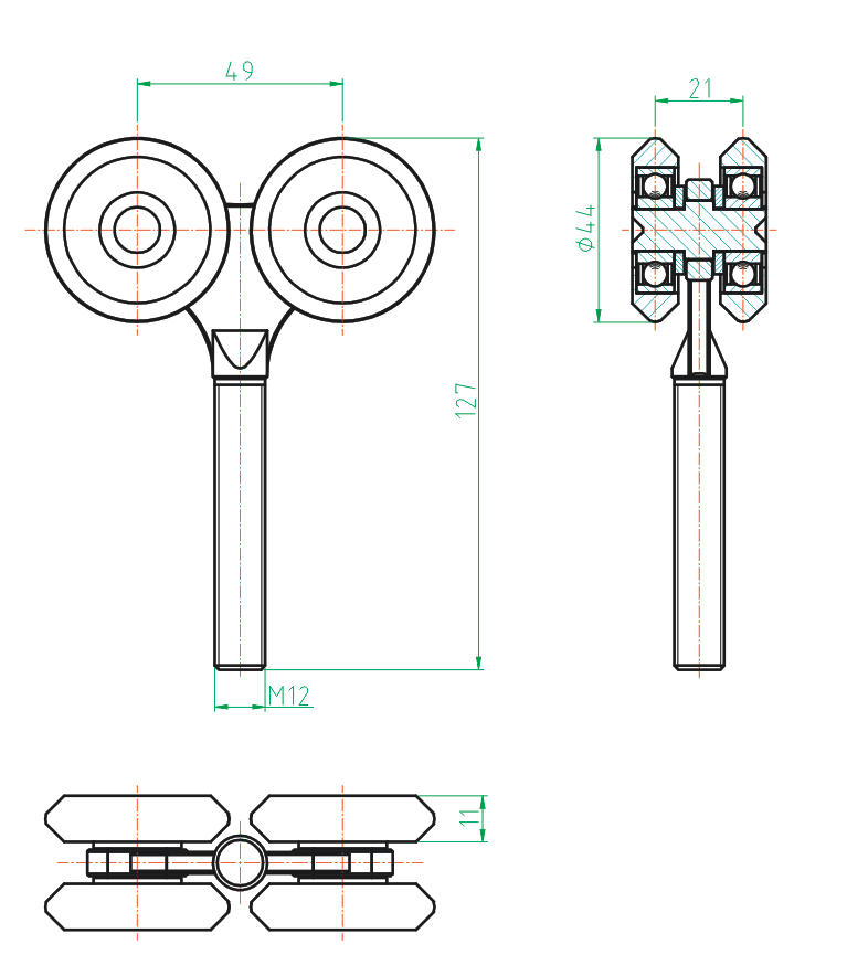 Ruota girevole sospesa INOX, profilo 42x54mm H8/08-42x54