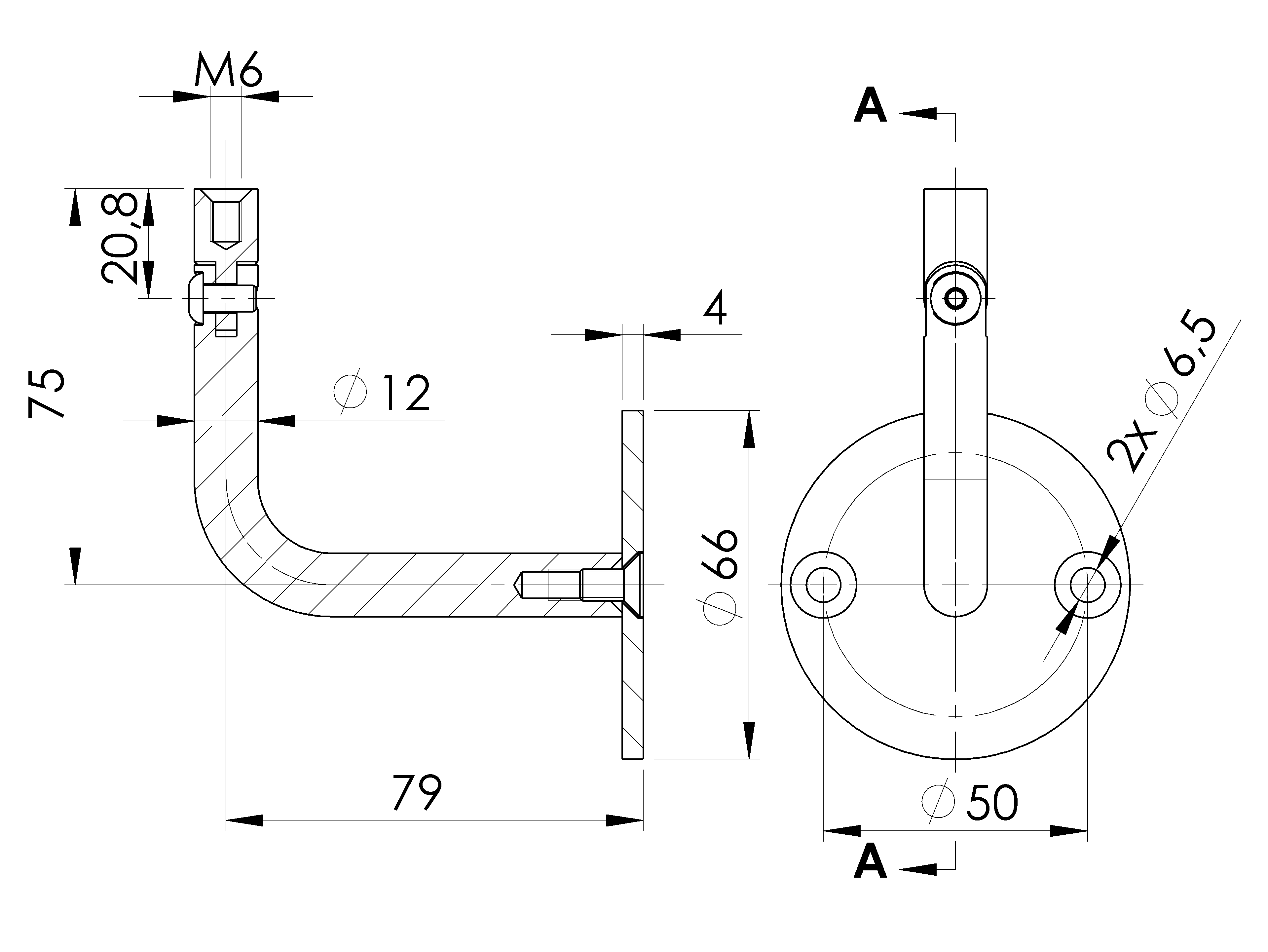 1 pzMaterialeAcciaio inossidabile AISI 304FinituraSatinatoCorrimanoCon filetto M6Accessori obbligatoriVite a testa svasata piana con cava esagonale, AISI304, M6x14 A-DIN 7991-A2 M6x14