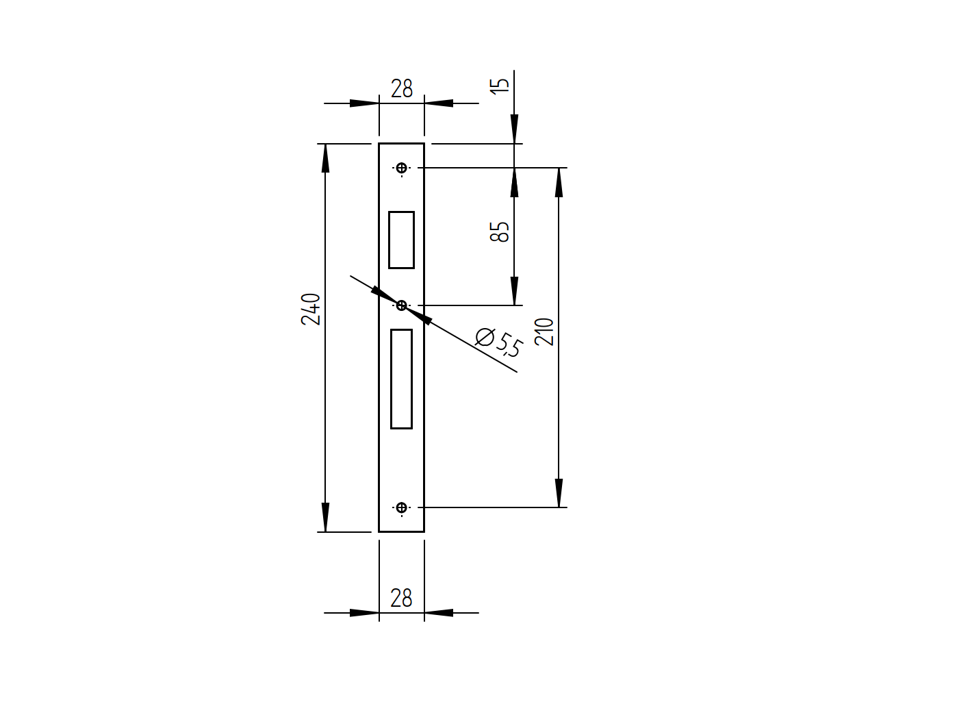 Scatola di serratura a cassetta (fronte) h 265mm, b 42mm B1/34-42A
