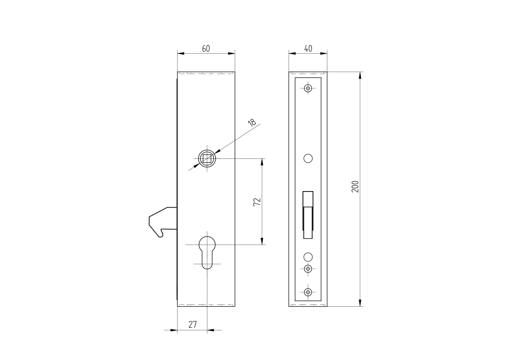Scatola di chiusura per serratura H/36-40A 80x40mm H/36-40K