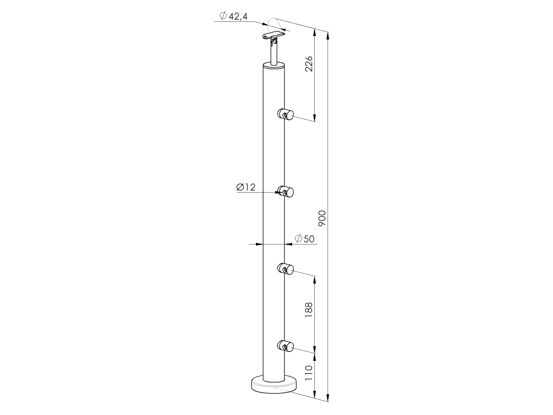 Materiale: Legno - faggio, Finitura: Grezzo, Uso: Piana/900mm, Riguardo: d12, Montante: 40x40 - legno, L: 900, Corrimano: D42,4x2, Ancoraggio: Di costassú, h1: 110, h2: 188, h3: 226