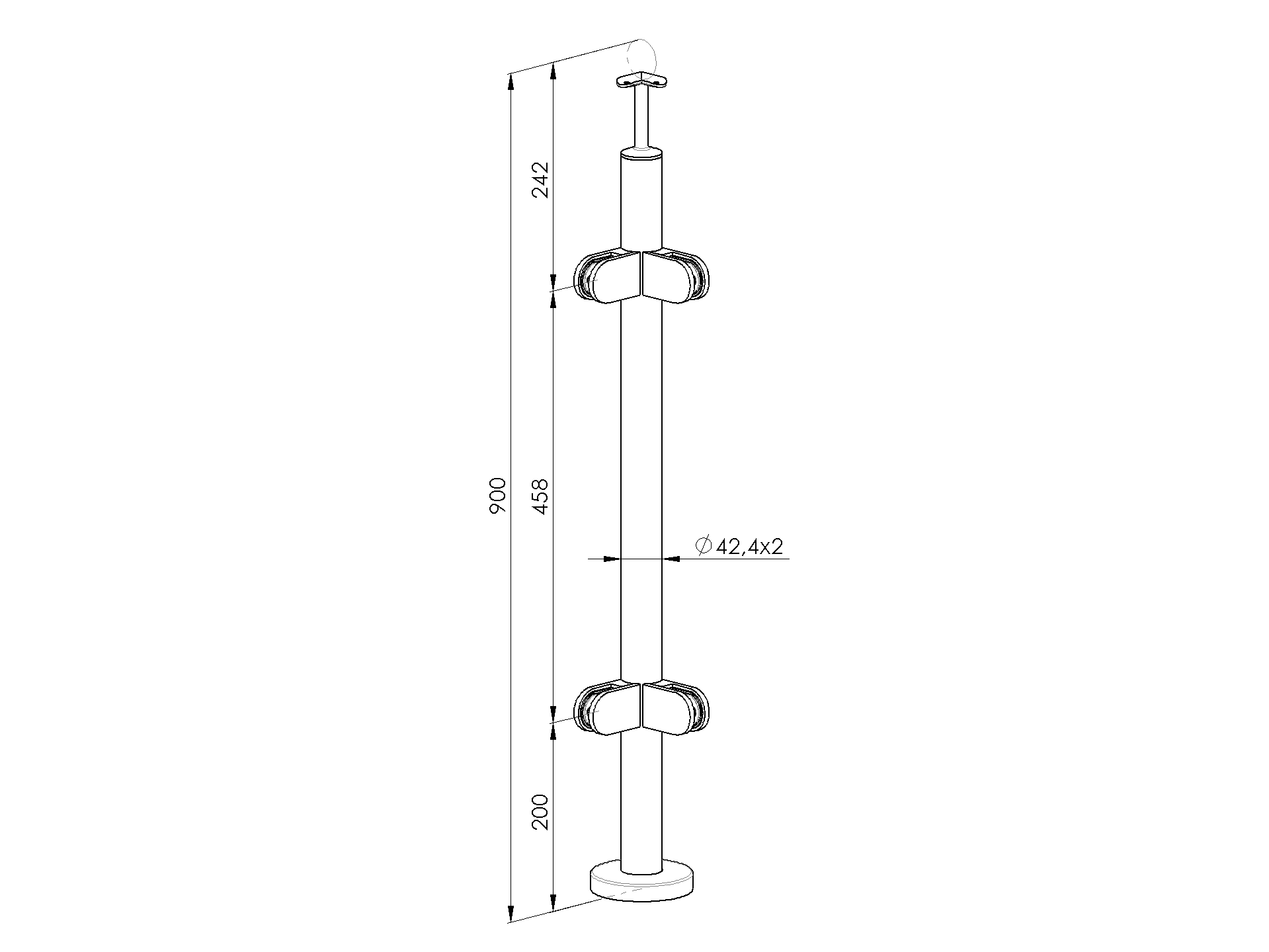 Palo, ancoraggio superiore - destro AISI304, D42,4/2xm A-VR90-2GR