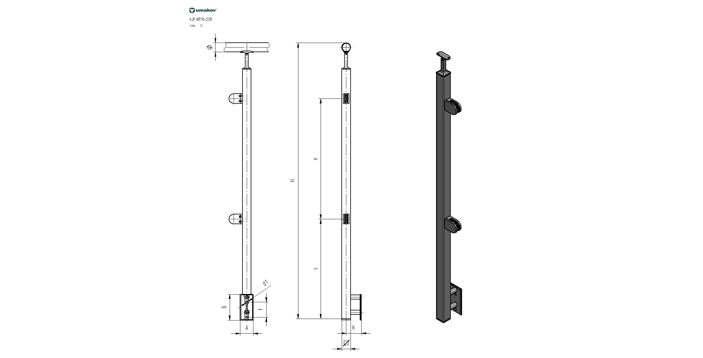 Palo, ancoraggio laterale - destro AISI304, 40x40x2/2x AJP-BR100-2GR