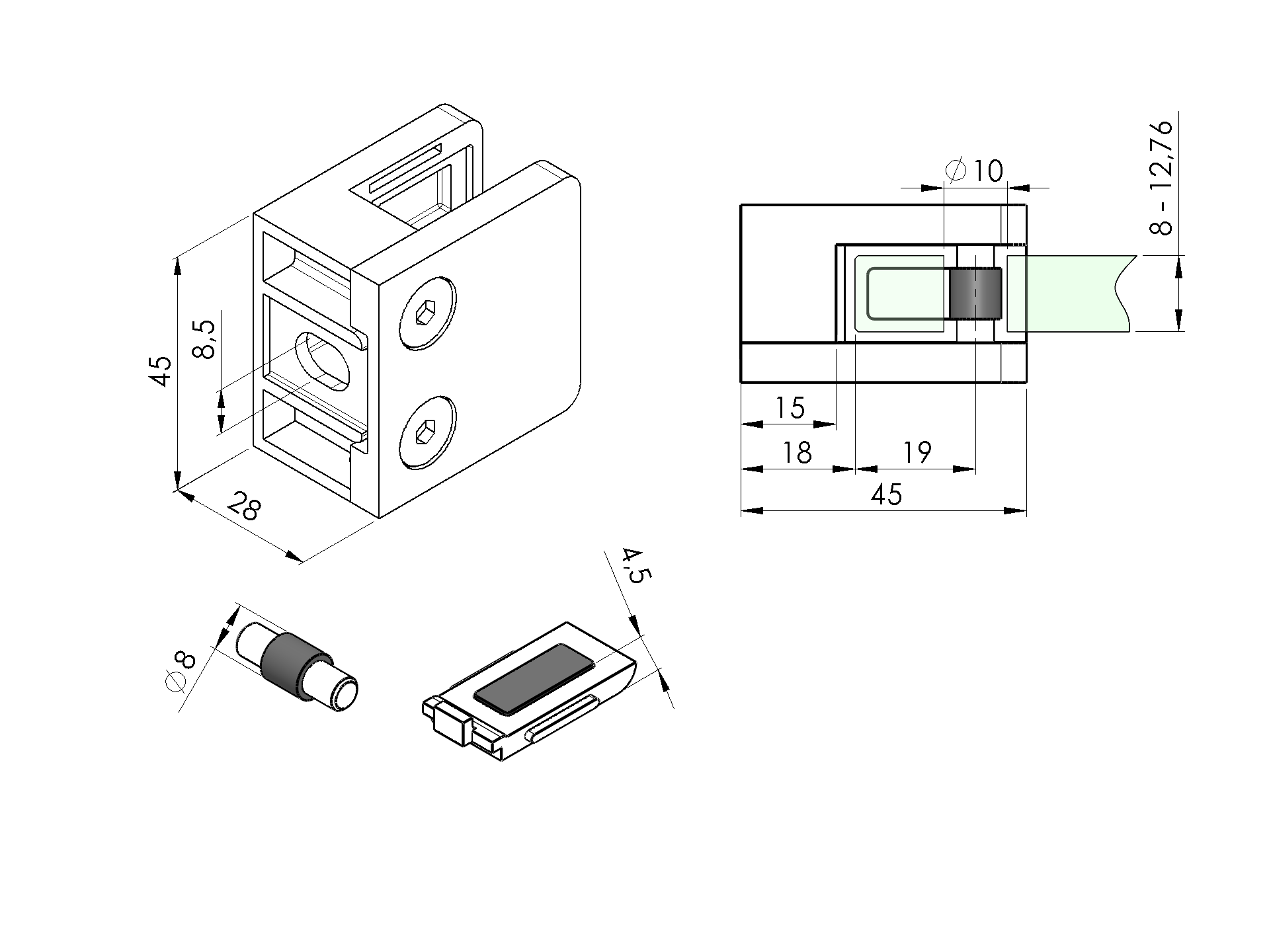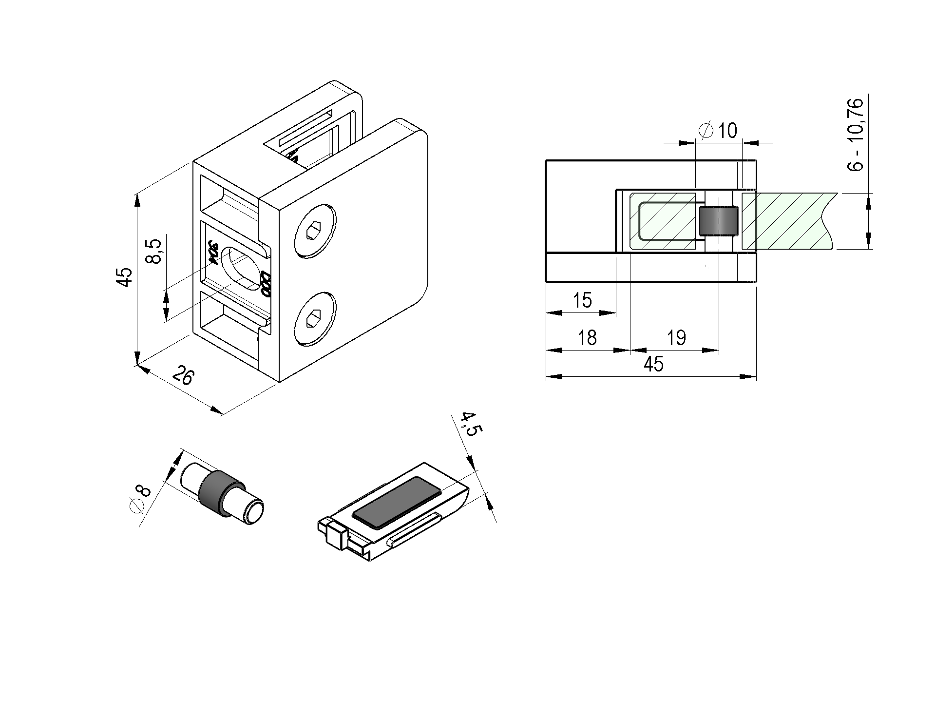 Supporto per vetro, ringhiera - set A/23KP-000-set4