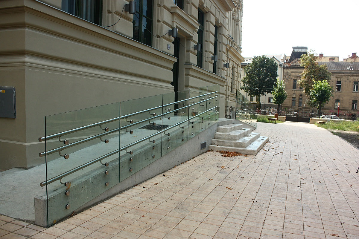 Supporto per vetro a punti - sistema FIX, per il fissaggio del pannello (riempimento in vetro), foro necessario nel riempimento, giunto di montaggio.