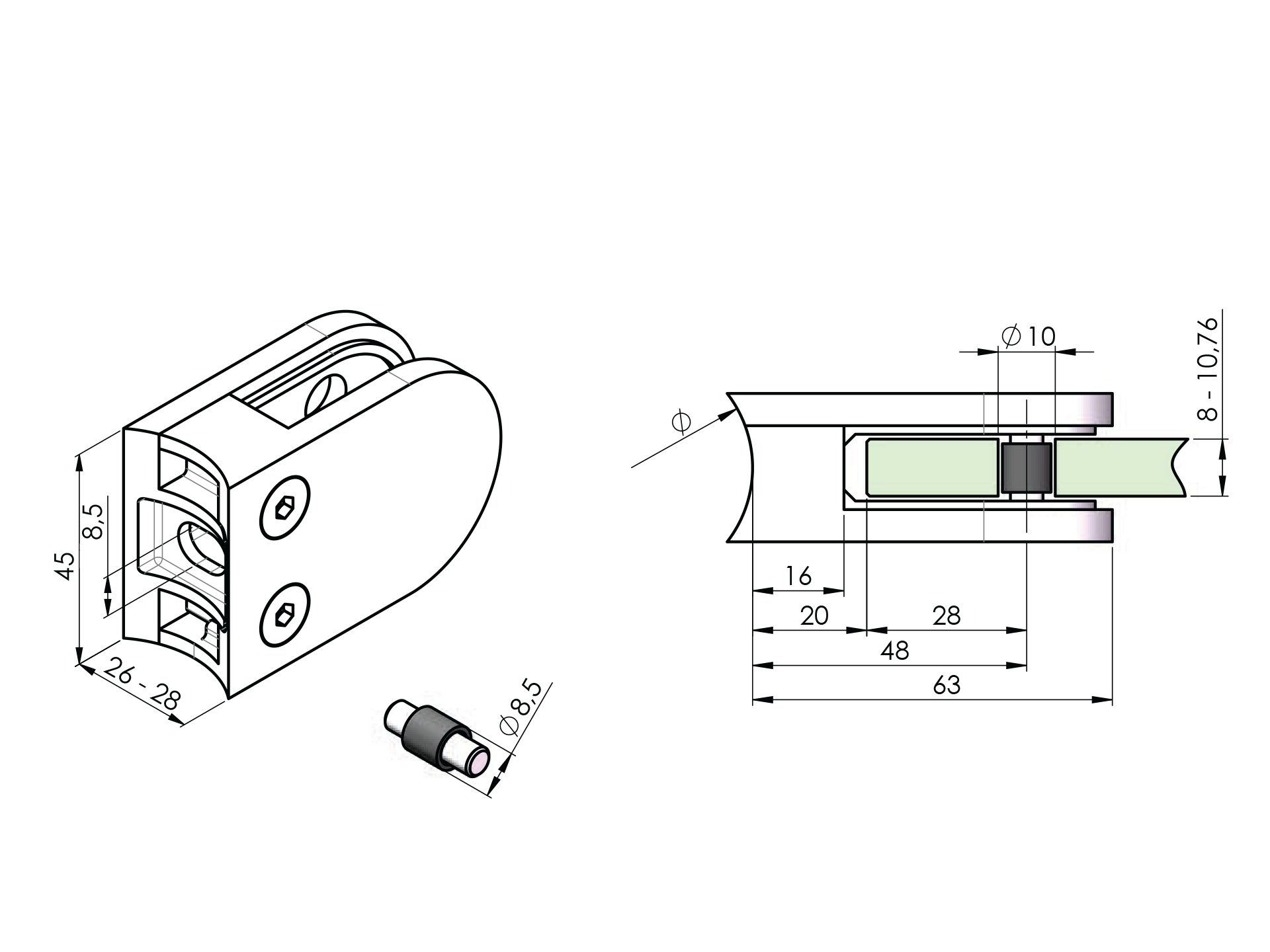 Gommino morsetto per vetro A19/25-009