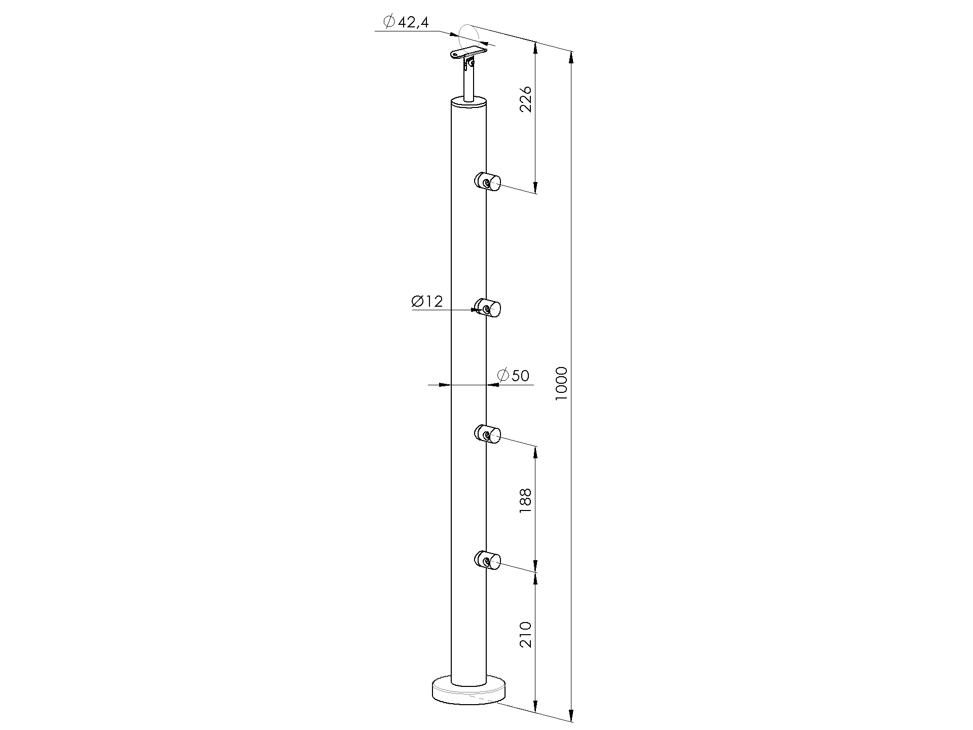 Paletto DUB D50/5x12mm, h=100cm, VK-Scala WD-VS100-5D12