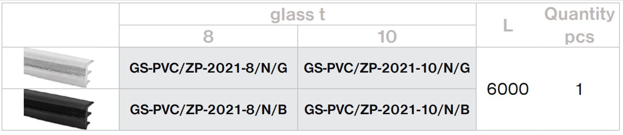 Vetratura fissa - guarnizione profilo GS-PVC/ZP-2021-10/N/G