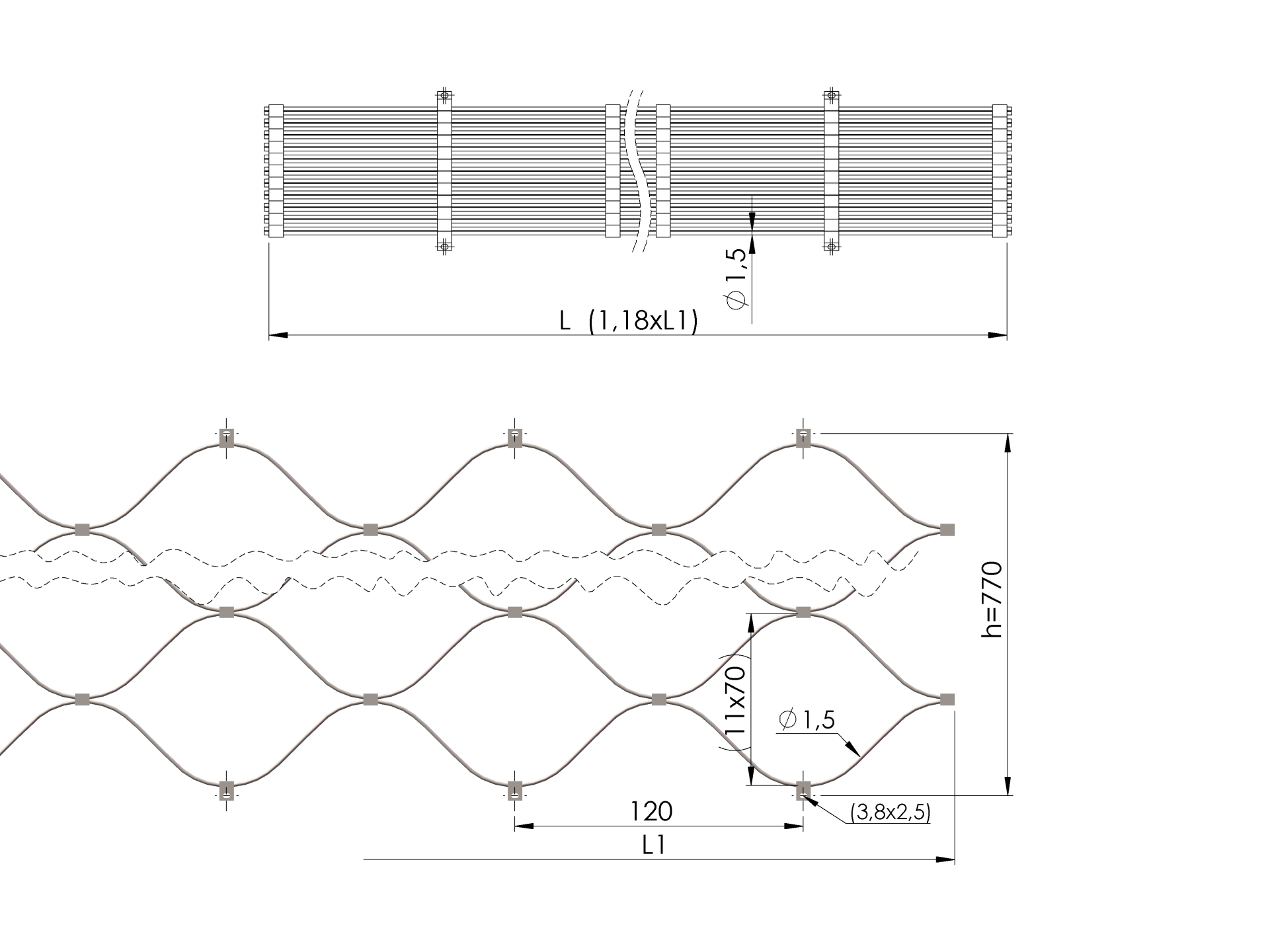 Prezzo più basso negli ultimi 30 giorni: €221,10 senza IVADisponibile (198 unità)Rete - riguardo di fune A14/LV-70x120x1,5-100