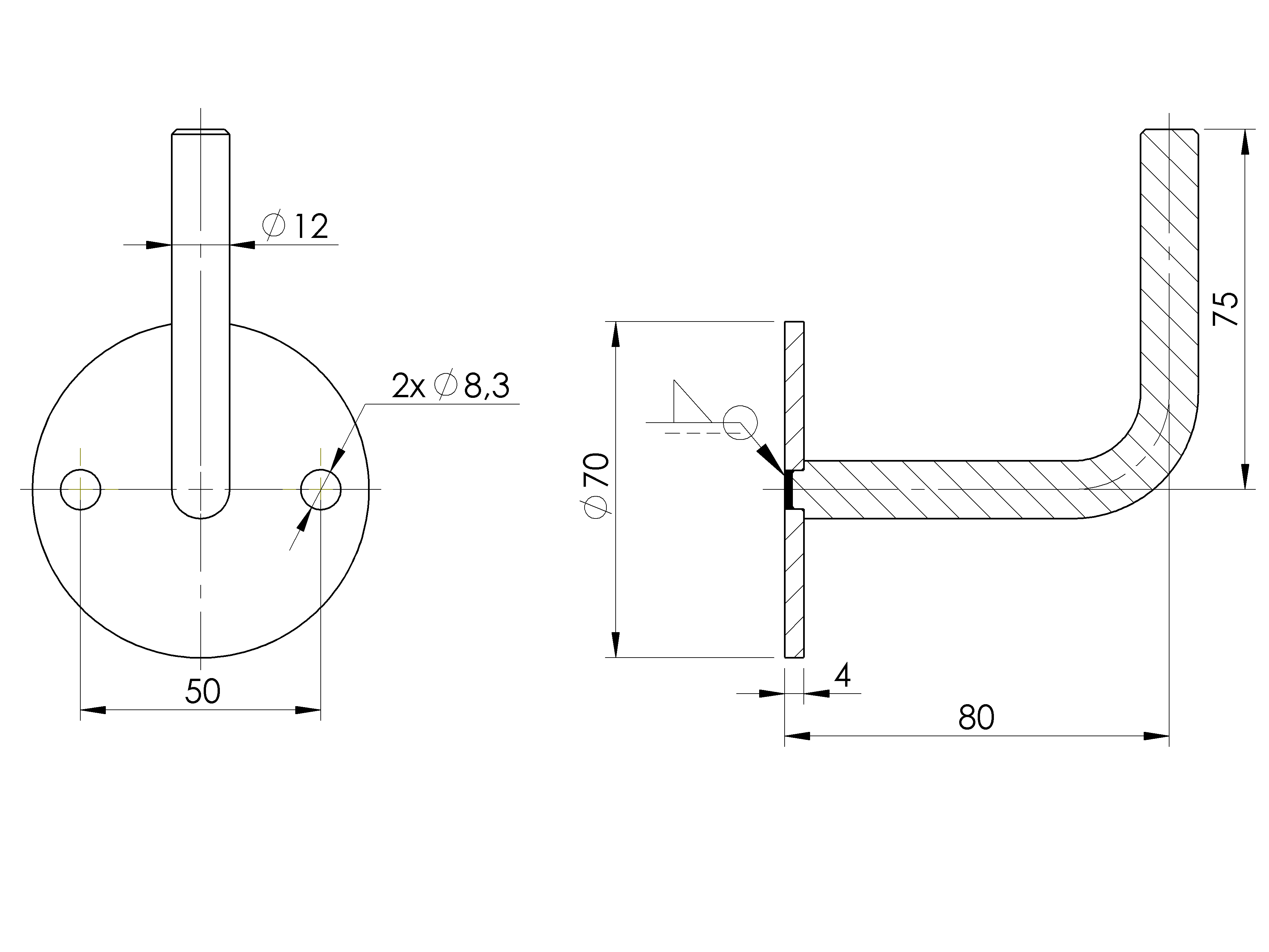 Materiale: Acciaio inossidabile AISI 304, Finitura: Satinato, Corrimano: Per saldatura, Ancoraggio: Su parete
