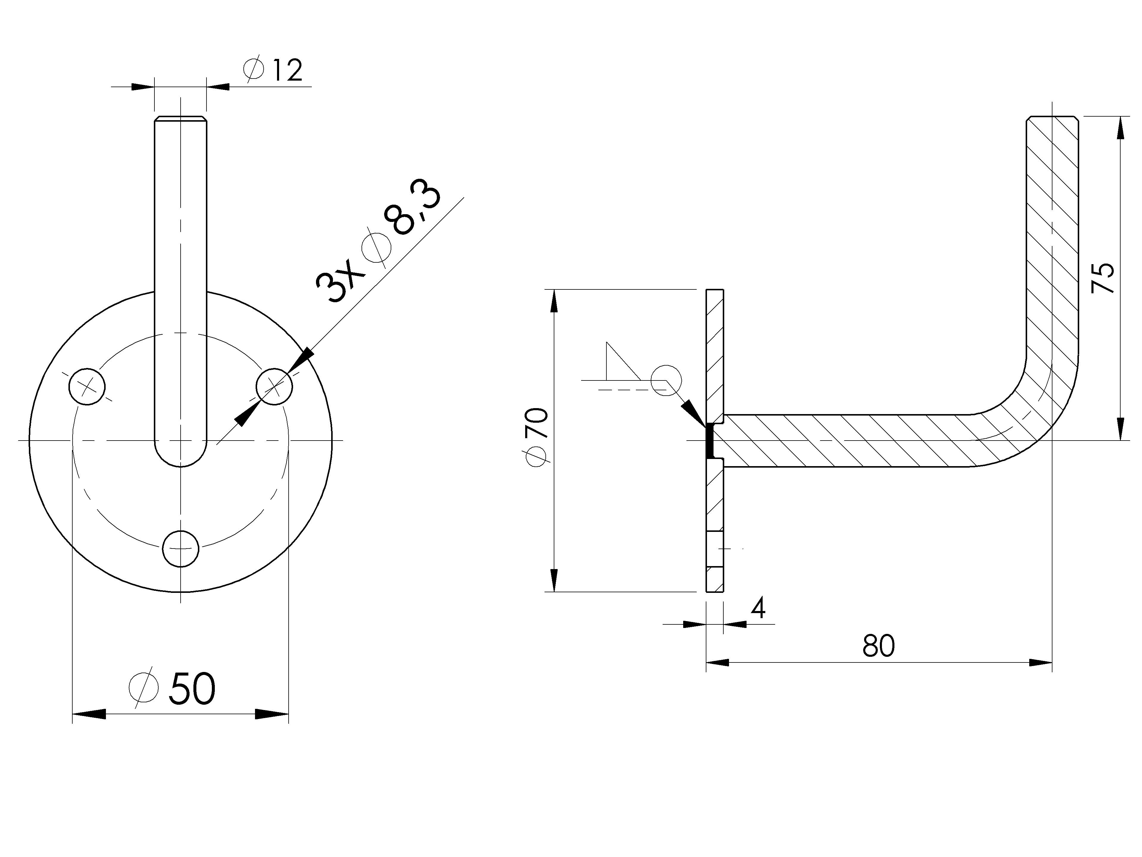 Supporto per maniglione da parete senza vaschetta A/0114-270