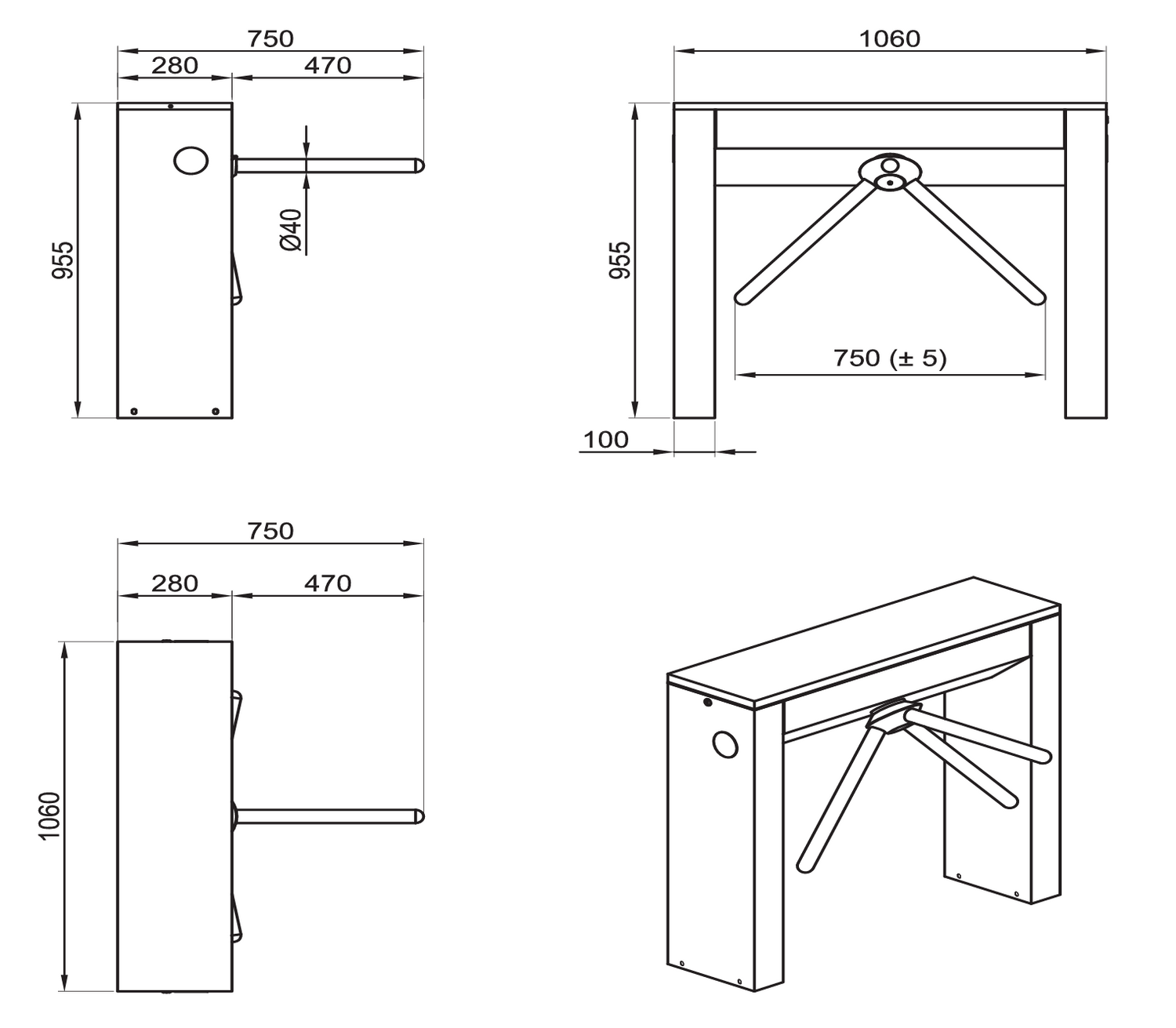 - Capacita di passaggio: Circa 25-46 persone al minuto per tornello unidirezionale (doppio per bidirezionale)