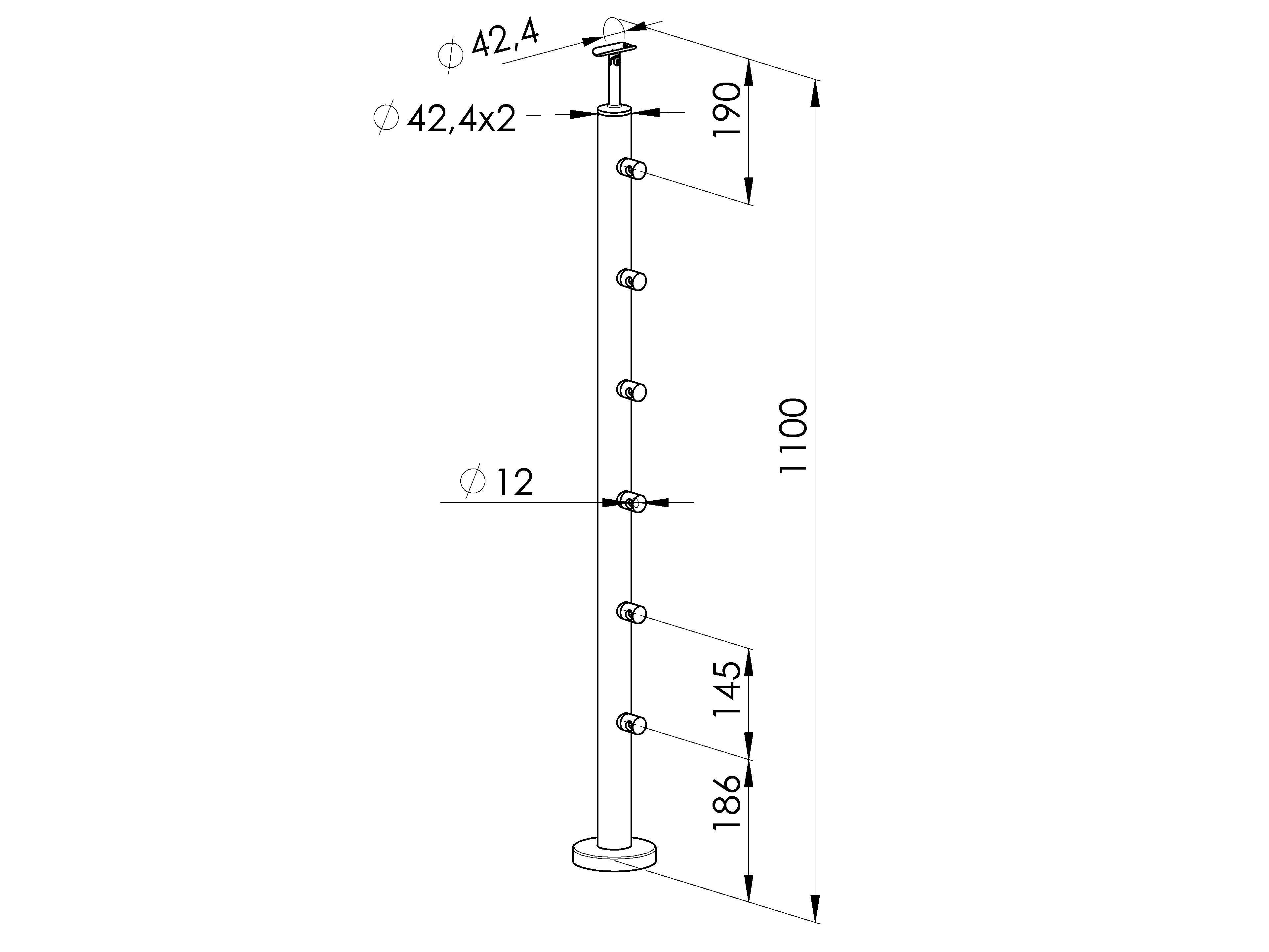 Paletto in acciaio inossidabile, ancoraggio superiore - per scale A-VS100-5D12