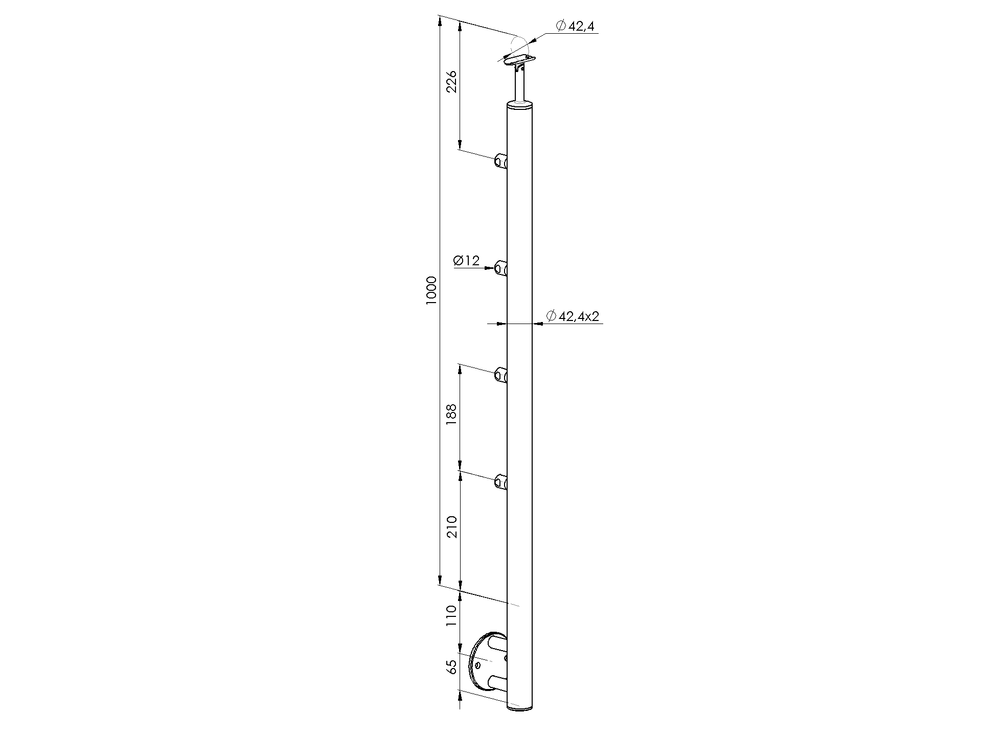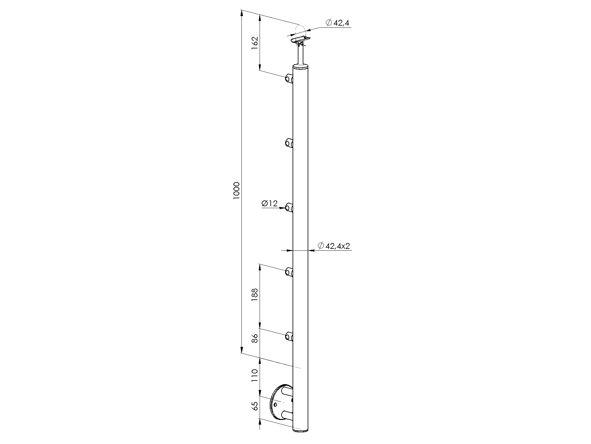Palo in acciaio inossidabile, ancoraggio laterale - dritto A-BR100-5D12