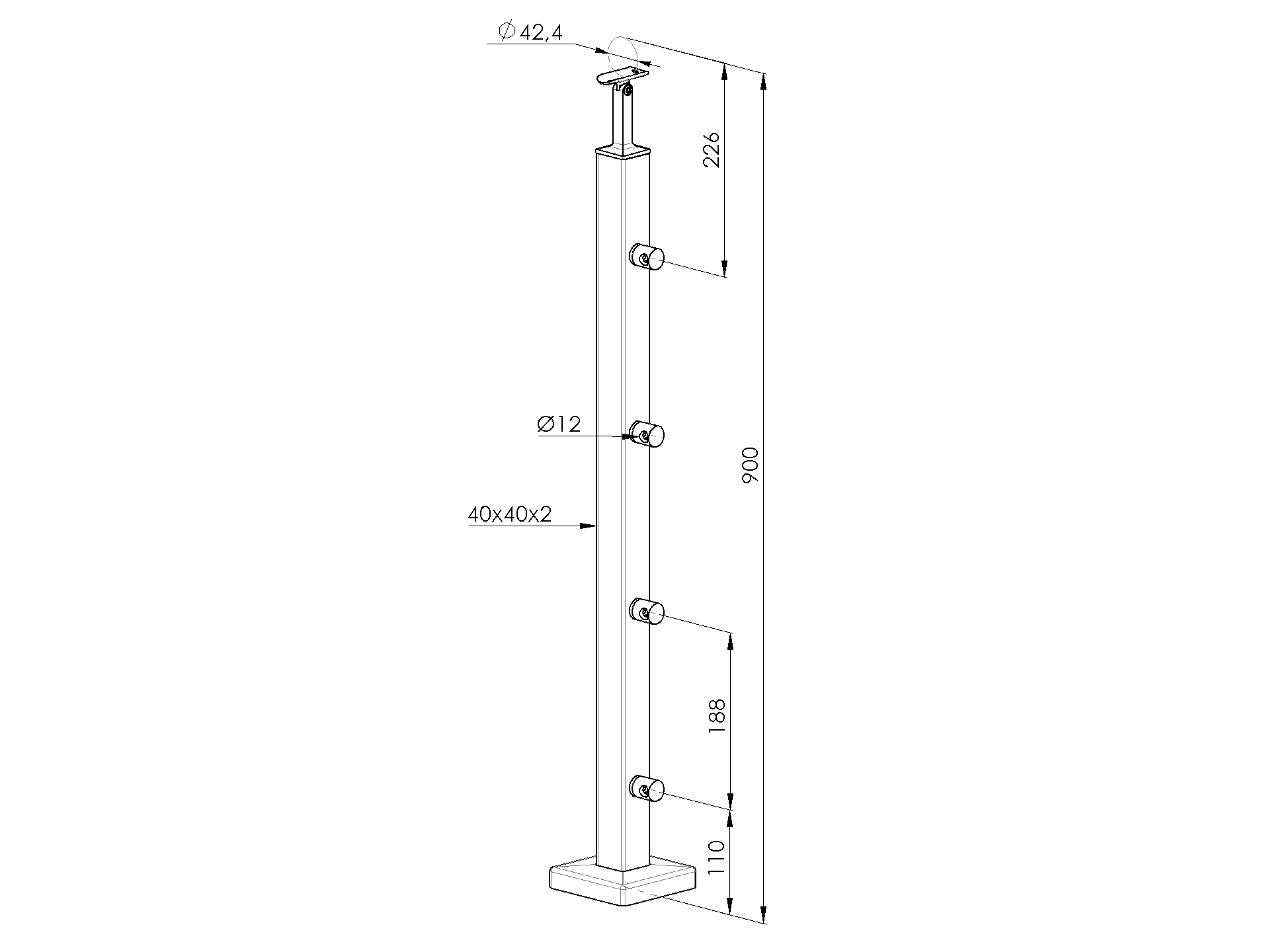Ringhiera, VK-dritto AISI304, 40x40x2/4xd12/H900/L6 AJP/ZVR90-6000