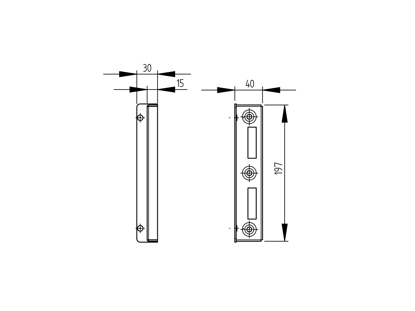 Scatola con serratura-lista (fronte) h 265mm, b 32mm B1/34-32A