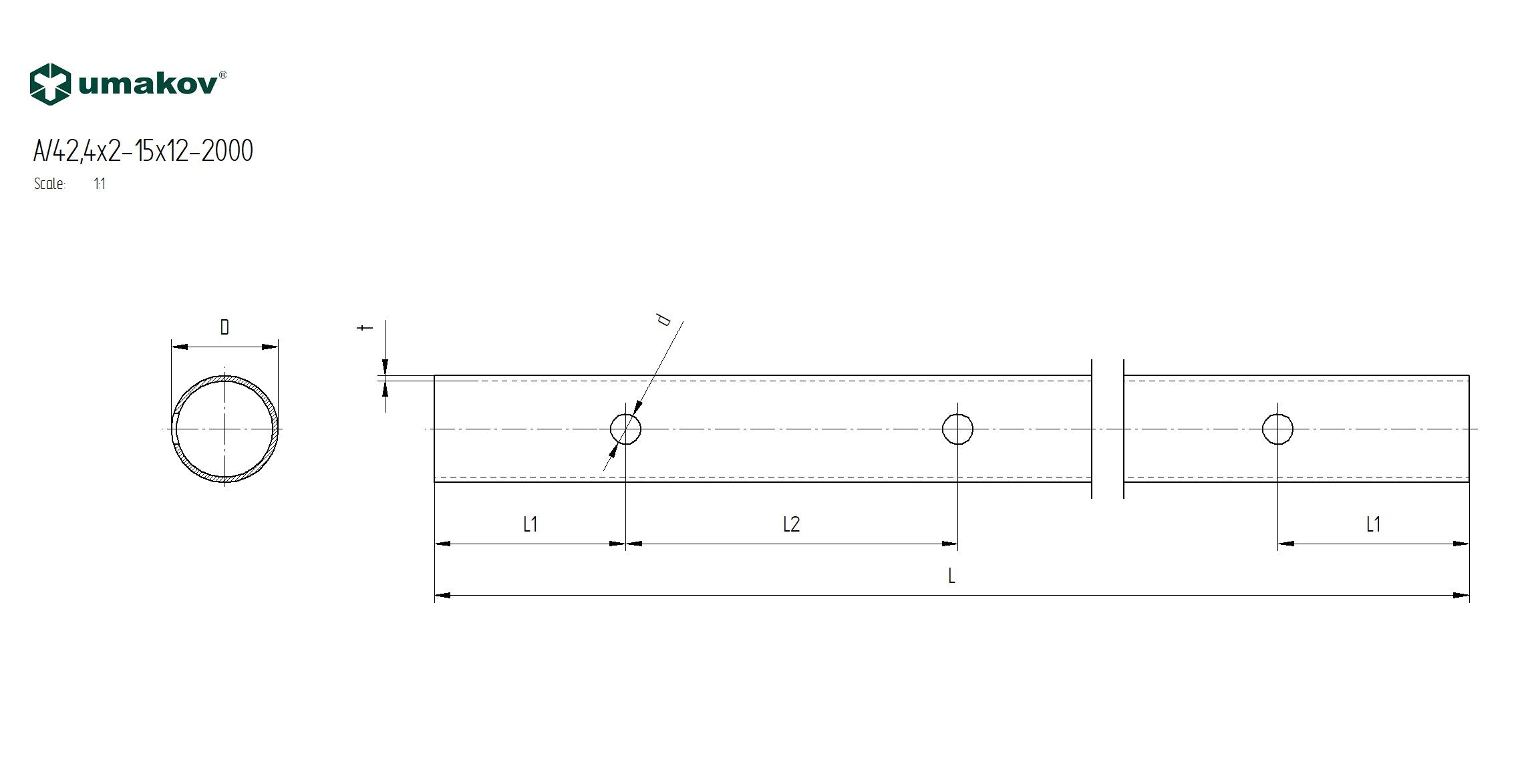 Tubo A/42,4x2-15x12-2000
