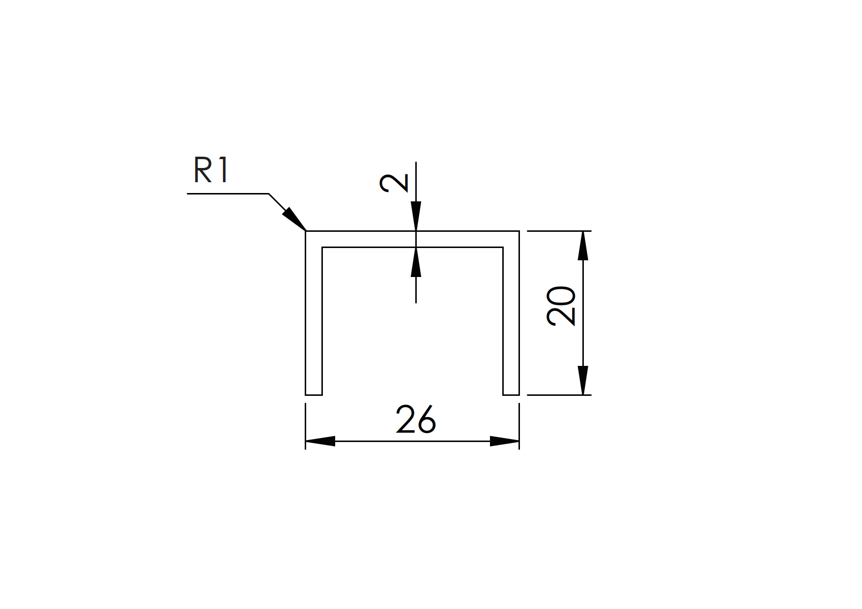 Angolo in alluminio per terminare il riempimento in vetro, finitura superficiale anodizzata nera.