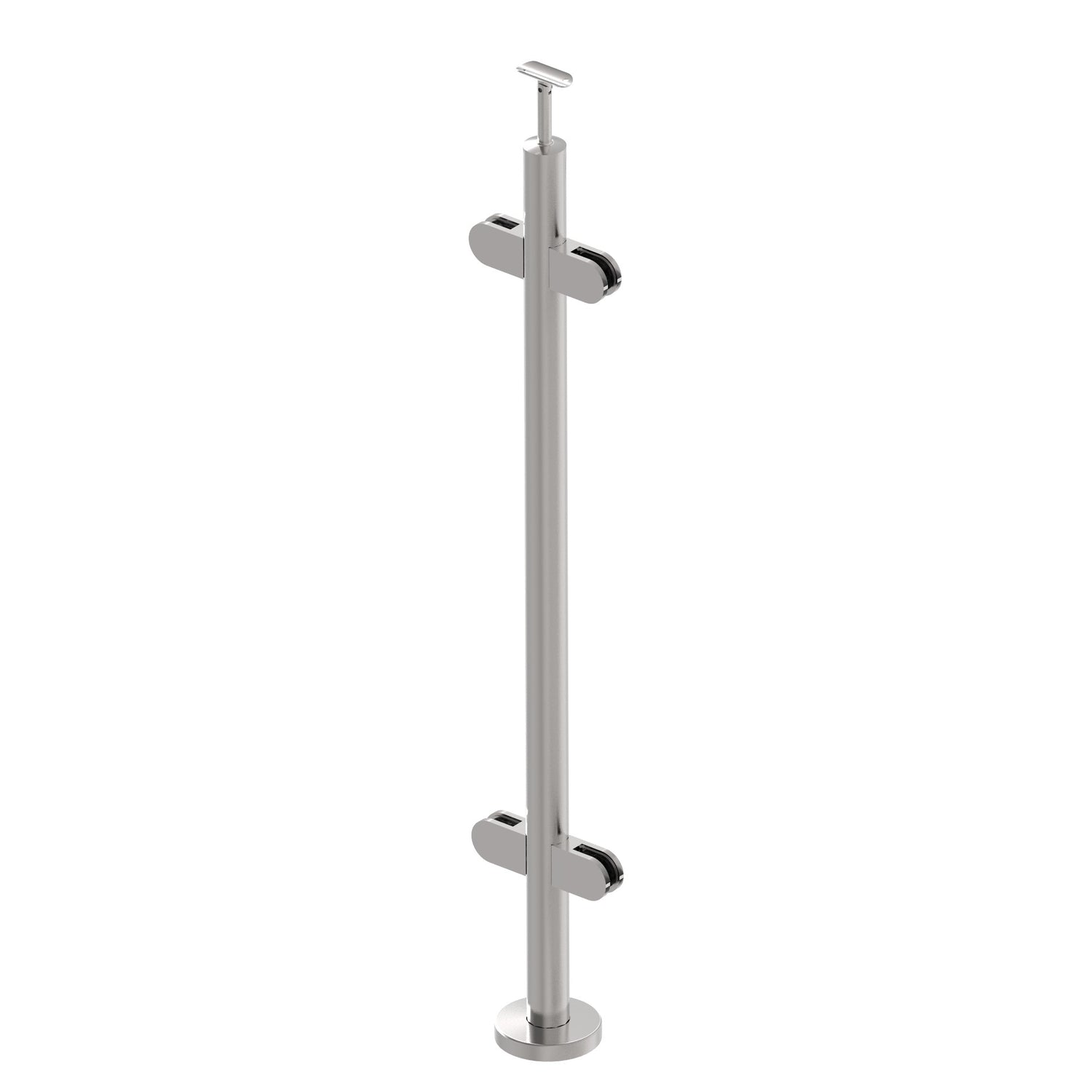 Materiale: Acciaio inossidabile AISI 304, Finitura: Satinato, Uso: Piana/1100mm, Riguardo: Il vetro, vetro t: 8,76, Modello: Modello 22, Ancoraggio: Di costassú