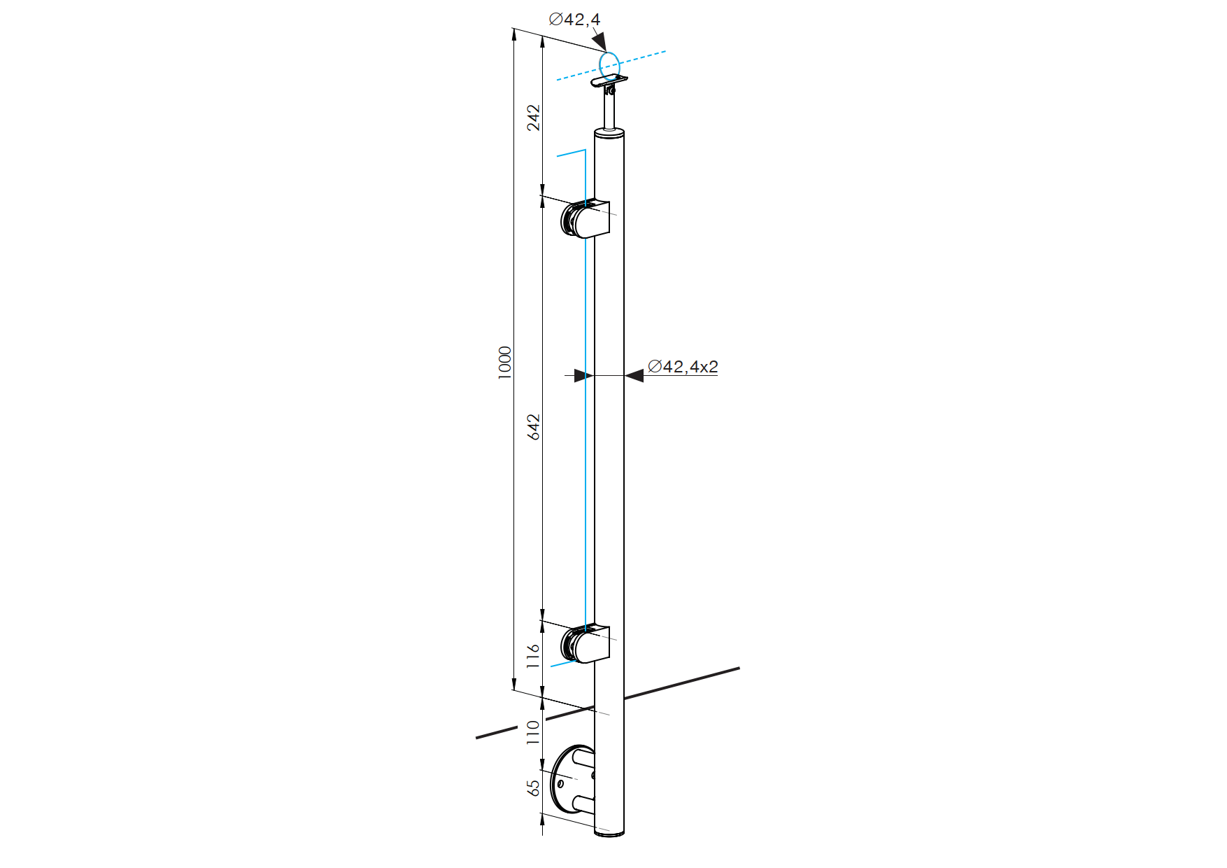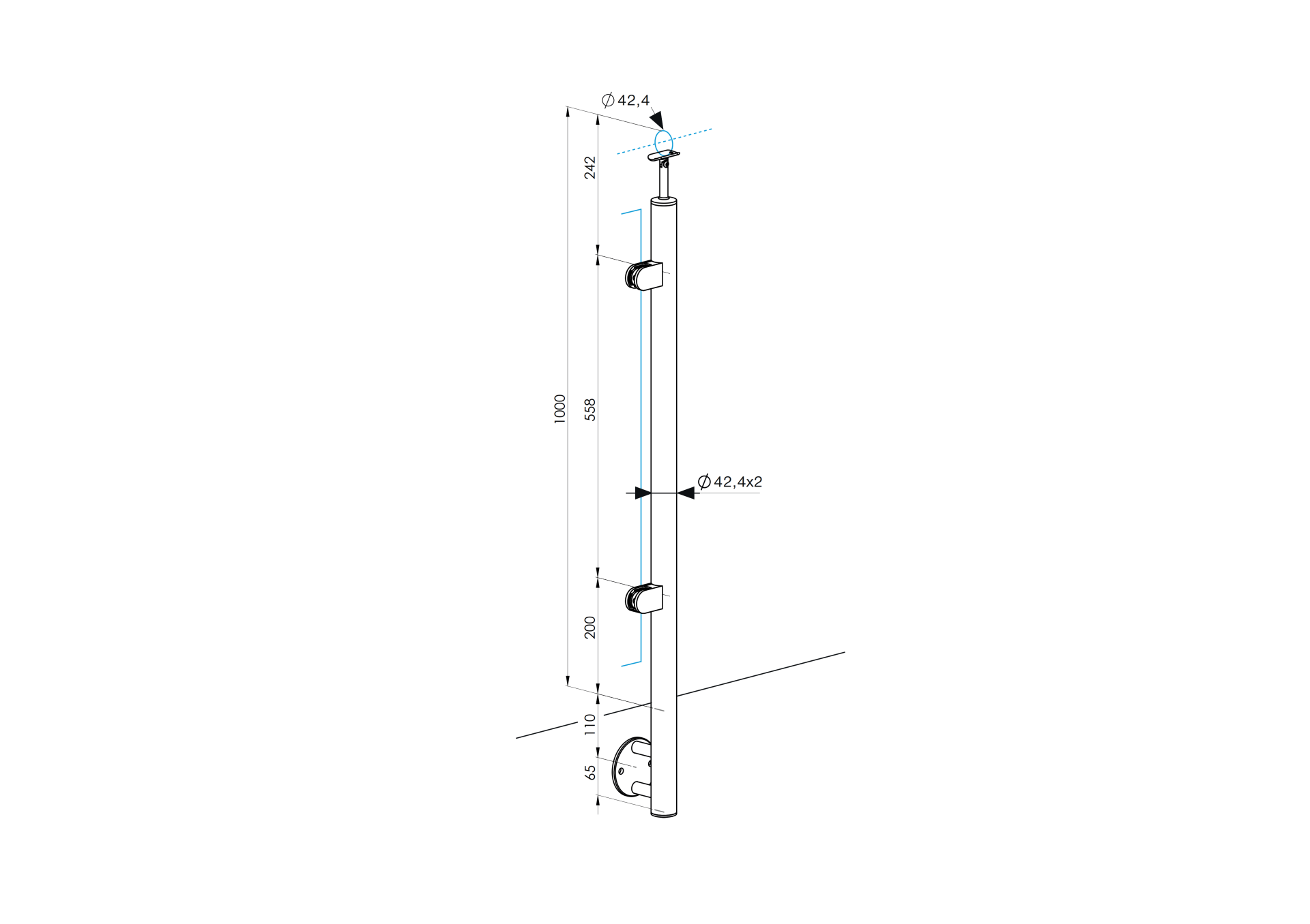 Palo - ancoraggio laterale - sinistro + piastra A-BR100-2GL-250P