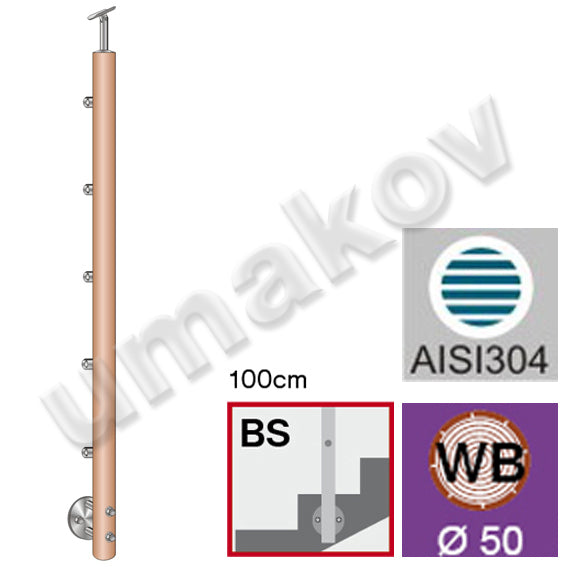 Beech pole BUK (BEECH) D50mm, 5xd12mm, H1000