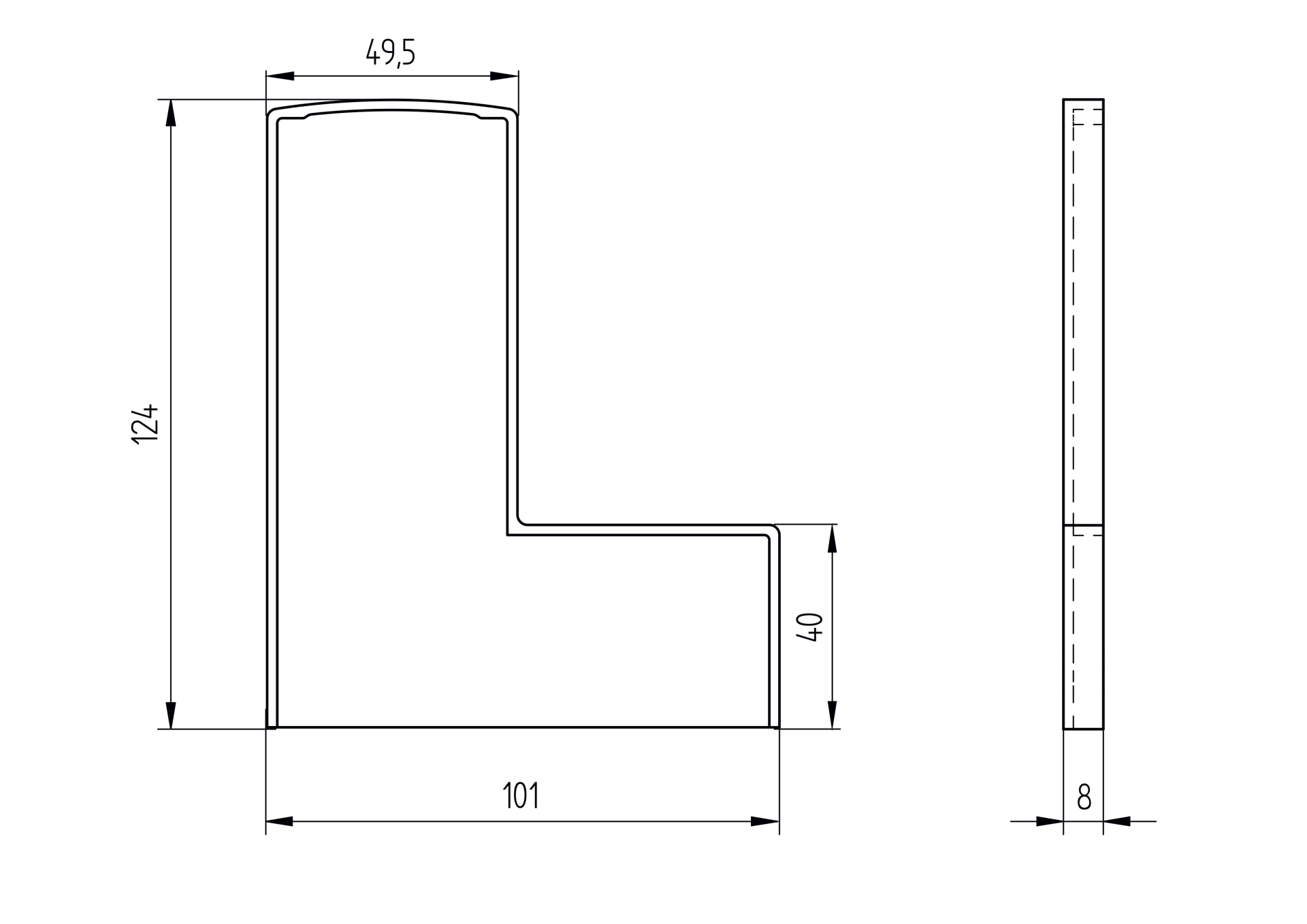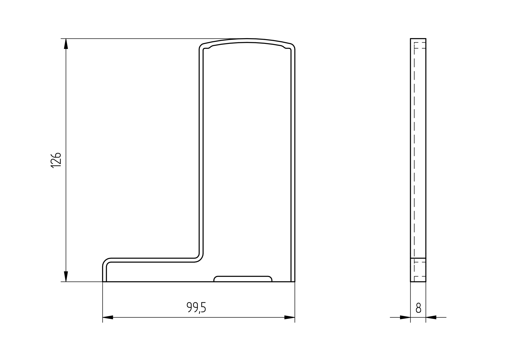 Profil di ancoraggio AL per vetro, ancoraggio superiore, superficie spazzolata e anodizzata, senza accessori.