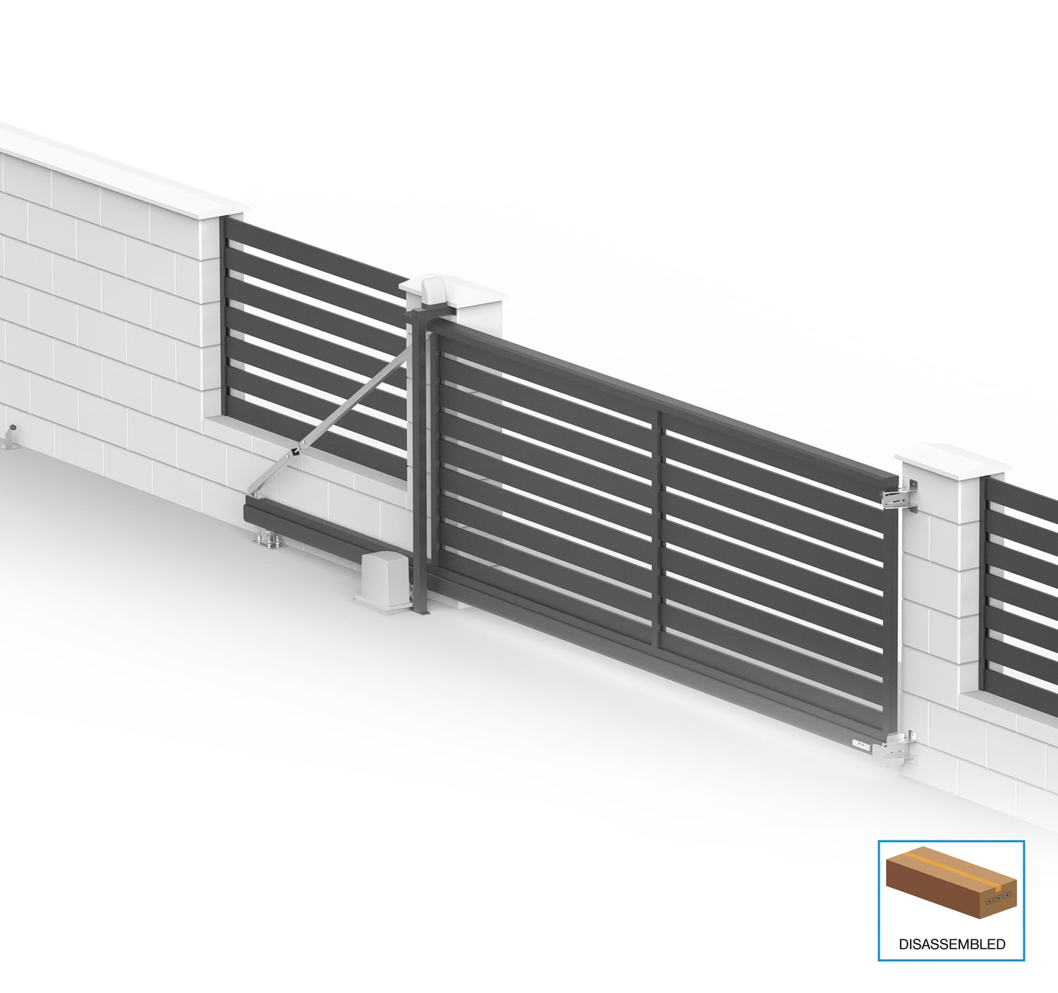 Il cancello scorrevole autoportante viene fornito come set di montaggio in stato smontato. E progettato per un montaggio rapido e semplice, senza necessita di saldatura. L'elenco dei componenti inclusi nel set si trova nella sezione Parti del set. Il set non include il materiale di ancoraggio. Il sistema di montaggio accuratamente progettato garantisce che il cancello sia robusto e stabile, mantenendo un aspetto attraente.