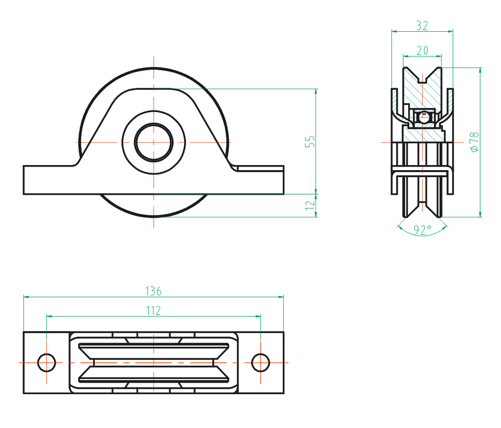 Ruota completa - V, INOX, D80mm H8/38V-80