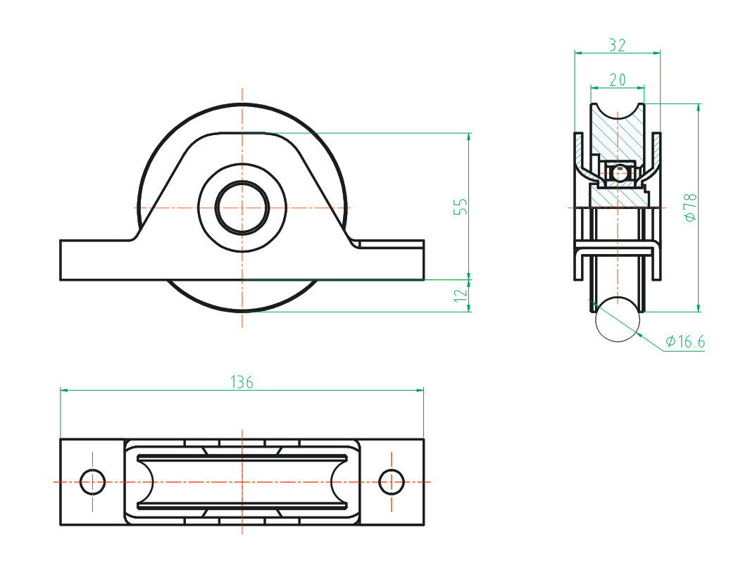 Carrucola del veicolo - completo - U, INOX, D80 H8/31U-80-R10