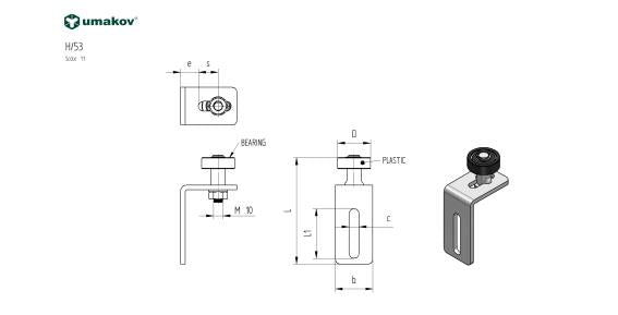 Ruota in nylon con staffa e cuscinetto, AISI304 H8/53