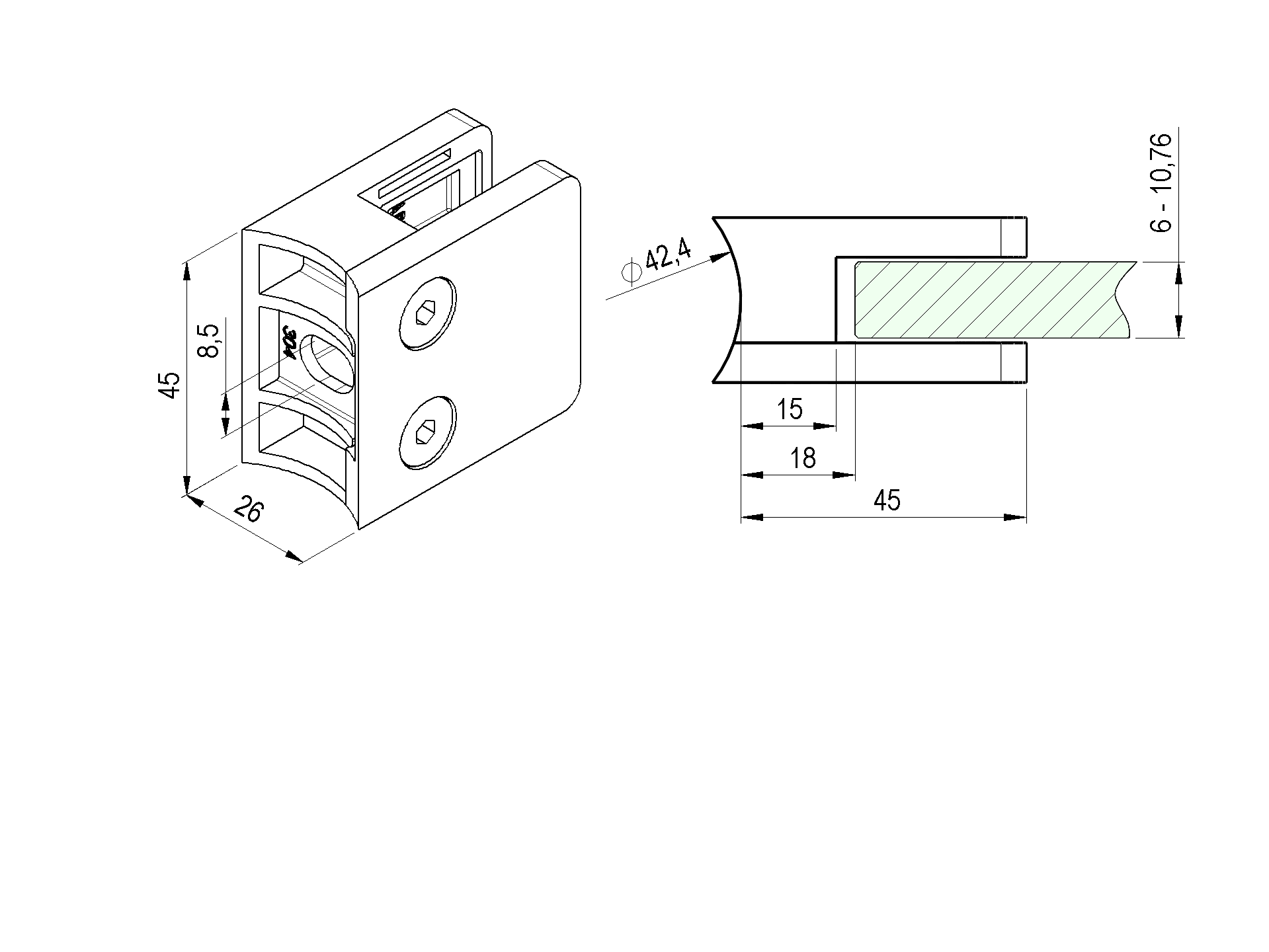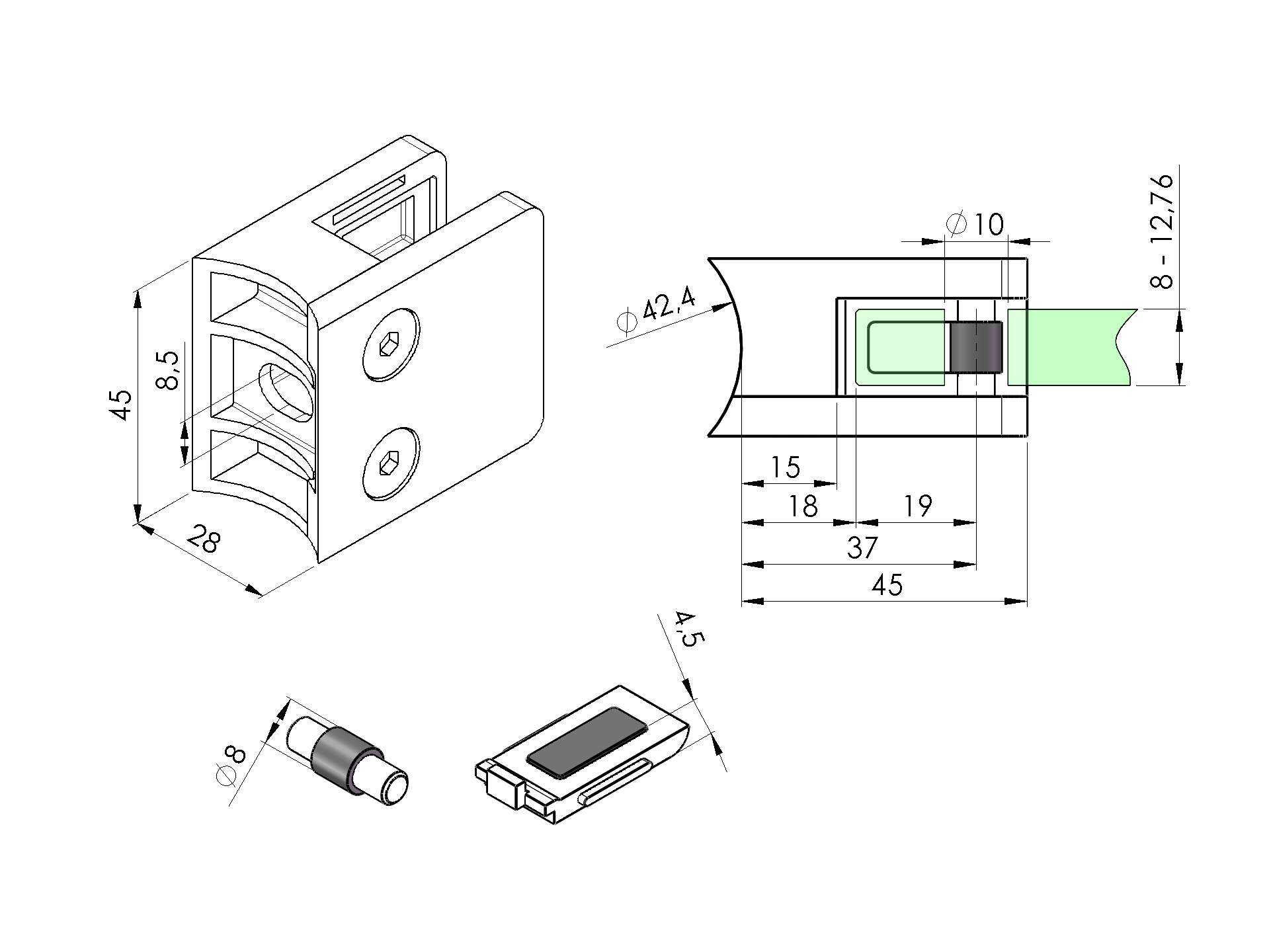 Supporto per vetro, ringhiera - set A14/23KP-042-set4