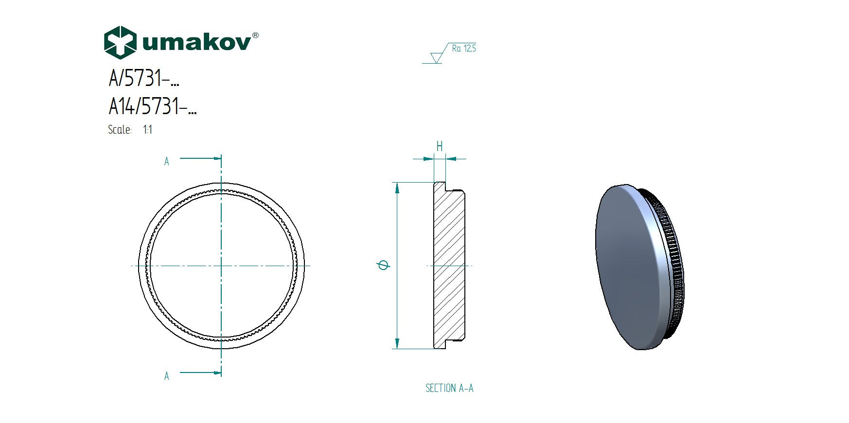 Tappo terminale per corrimano, cavo, con zigrinatura, da martellare