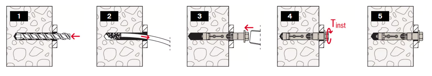 Kotva pre vysoké záťaženie je vhodná na upevnenie zábradlí, schodiskových konštrukcií a rebríkov do trhlinového a netrhlinového betónu.